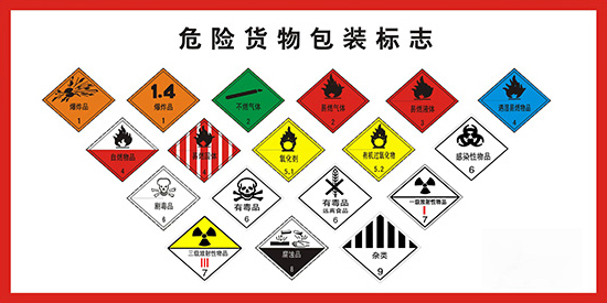 第1類 爆炸品 第2類 氣體 第3項 易燃液體 第4類 易燃固體、易于自燃物質、遇水放出易燃氣體物質 第5類 氧化性物質和有機過氧化物 第6類 毒物質和感染性物質 第7類 放射性物質 第8類 腐蝕物質 第9類 雜項危險物質和物品劇毒化學品、危險廢物